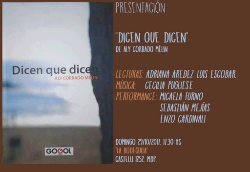 Este domingo 29 de octubre en La Bodeguita, ubicada en Castelli 1257, Aly Corrado Mélin presentará su libro de poesías titulado Dicen que dicen, editado por Gogol.