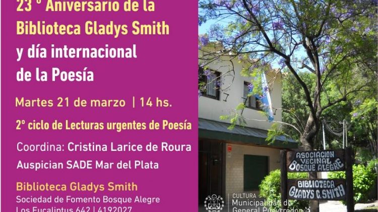 El martes 21 a partir de las 14 se llevará a cabo la celebración por el 23° aniversario de la Biblioteca Gladys Smith, ubicada en …