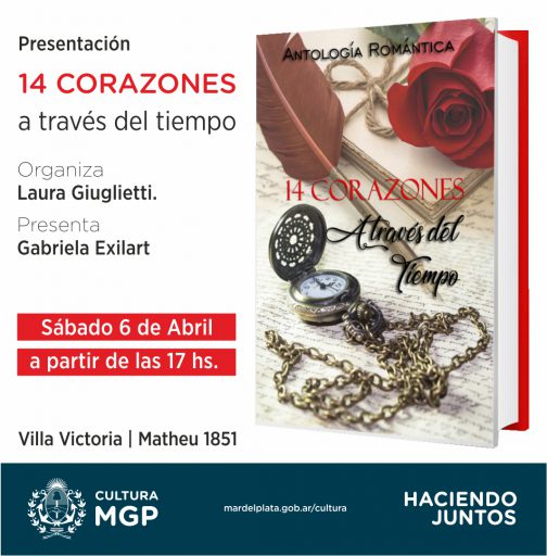 Este sábado a las 17 en Villa Victoria, ubicada en Matheu 1851 de Mar del Plata, se presentará el libro 14 corazones a través del tiempo, que reúne a catorce