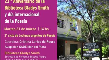 El martes 21 a partir de las 14 se llevará a cabo la celebración por el 23° aniversario de la Biblioteca Gladys Smith, ubicada en …