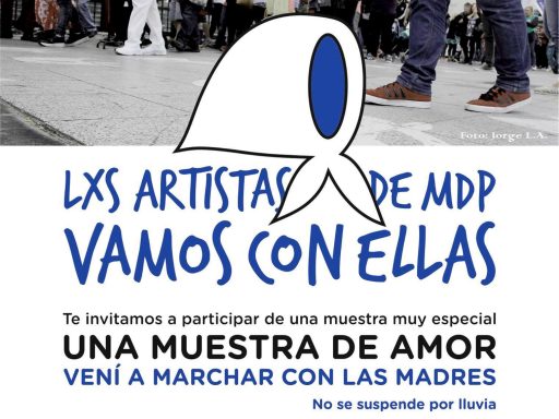Escritores y dramaturgos fueron convocados por la campaña “Mar del Plata te canta los 40” a sumarse, junto a otros artistas locales, a la actividad “Los artistas de MdP vamos con ellas”, que se lleva adelante todos los jueves de junio de 16 a 16:30 en Mitre y San Martín en apoyo a las madres de Plaza de Mayo.